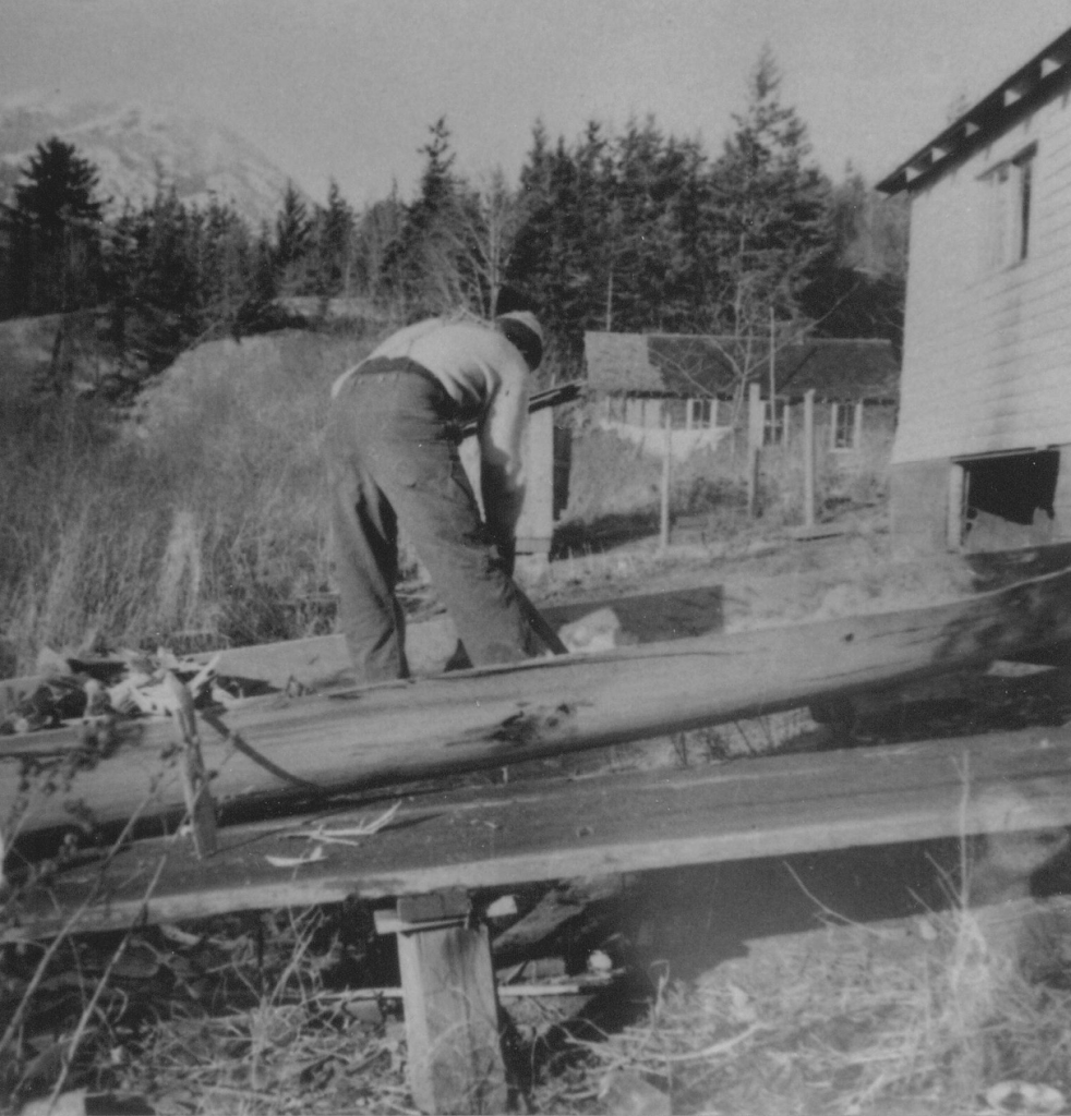 Left: Harriet Harry (Tsawaysia) barbecuing salmon ‘Squamish Nation Style’ at the Sta-a-mus Reserve. Right: Moses Billy (Siyamshun), of Squamish Nation, working on a dugout river canoe at Sta-a-mus Reserve. He lived in Sta-a-mis in the early 1900’s. Source: Squamish History Archives